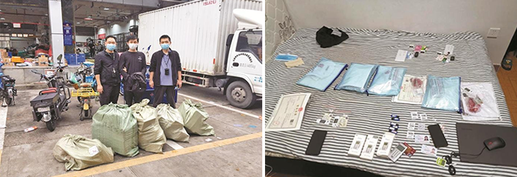 福田分局在抓獲1名參與涉案贓款取現(xiàn)的嫌疑人后,經(jīng)連夜審訊又挖出2名為電信詐騙犯罪提供對公賬戶以及賣國家機(jī)關(guān)公文印章的“幕后上家”;同時,還在福田區(qū)抓獲一名專門幫助詐騙分子收卡、送卡的快遞行業(yè)“內(nèi)鬼”(某快遞公司福田村代理點(diǎn)負(fù)責(zé)人趙某光),專案組民警據(jù)其供述雷霆出擊,抓獲其上家邱某翔、送貨司機(jī)王某龍二人,該二人對受境外在逃人員林某某指使,將全國各地收購的個人銀行賬戶和對公賬戶通過趙某光轉(zhuǎn)運(yùn)至境外,用于電詐、網(wǎng)絡(luò)賭博、洗錢等違法犯罪行為供認(rèn)不諱。